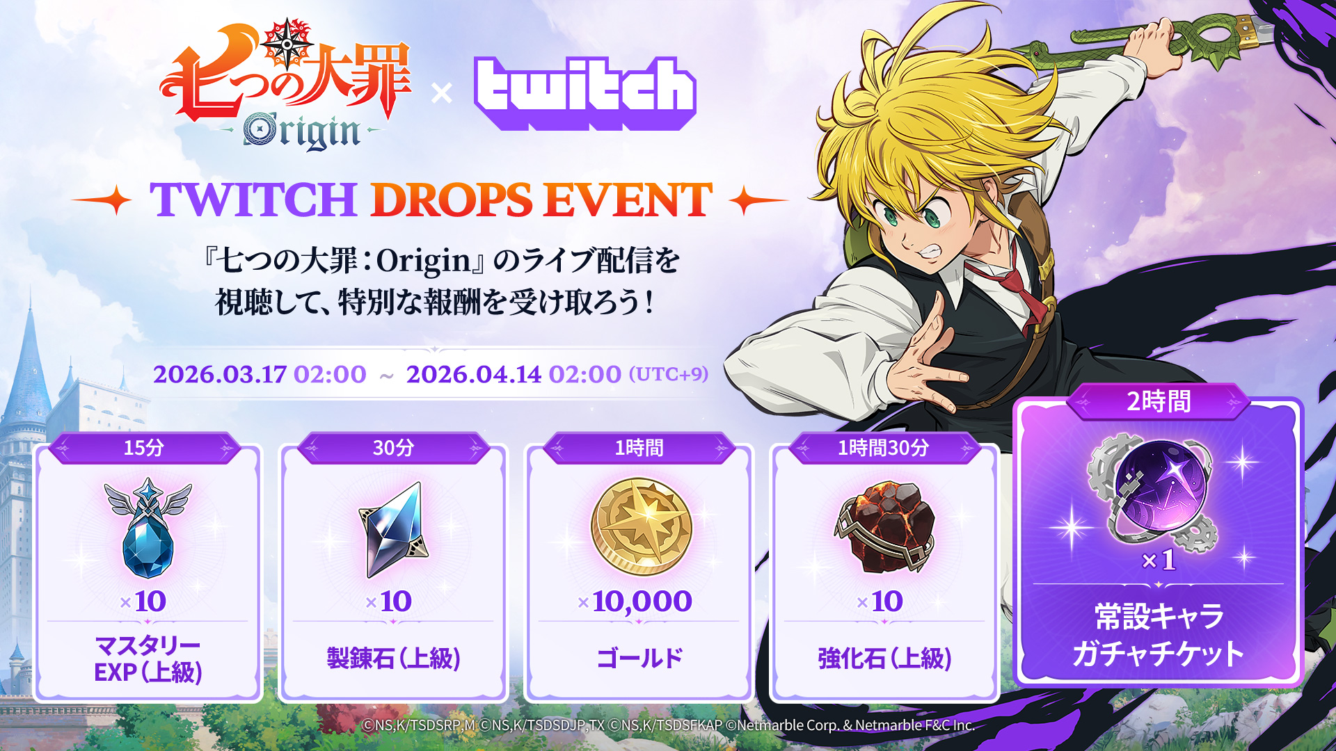 Twitchで『七つの大罪:Origin』の配信を視聴して、報酬を受け取ろう!